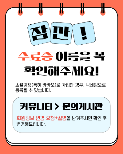 수료증 이름을 꼭 확인해 주세요